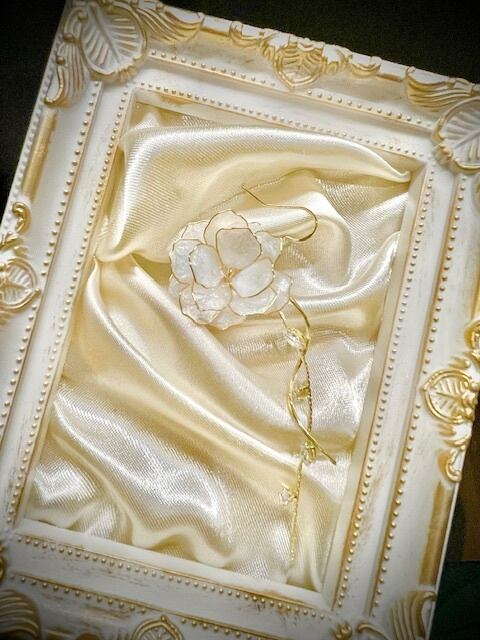 華やかな輝きが魅力のパールホワイトフラワーピアス。